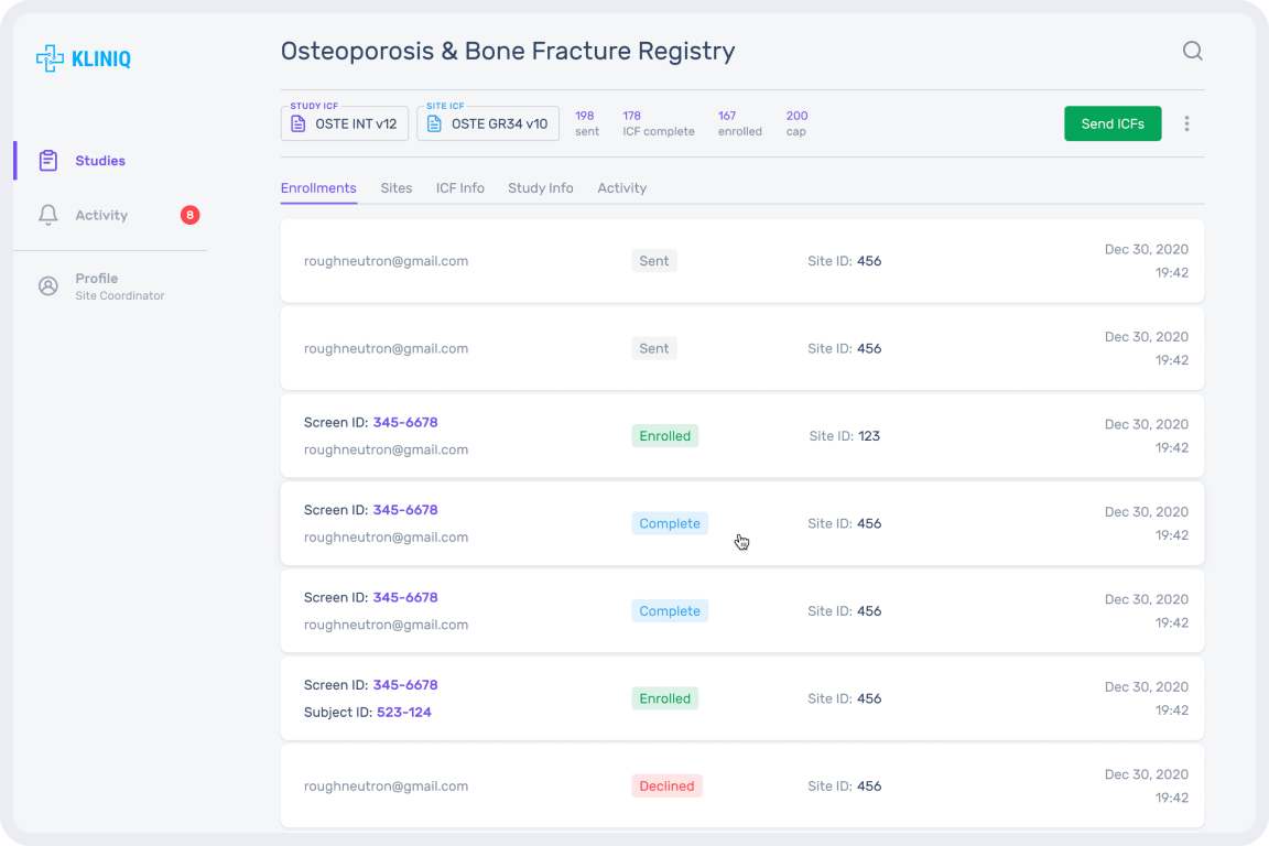 Kliniq is a fast and reliable system to perform electronic clinical trials