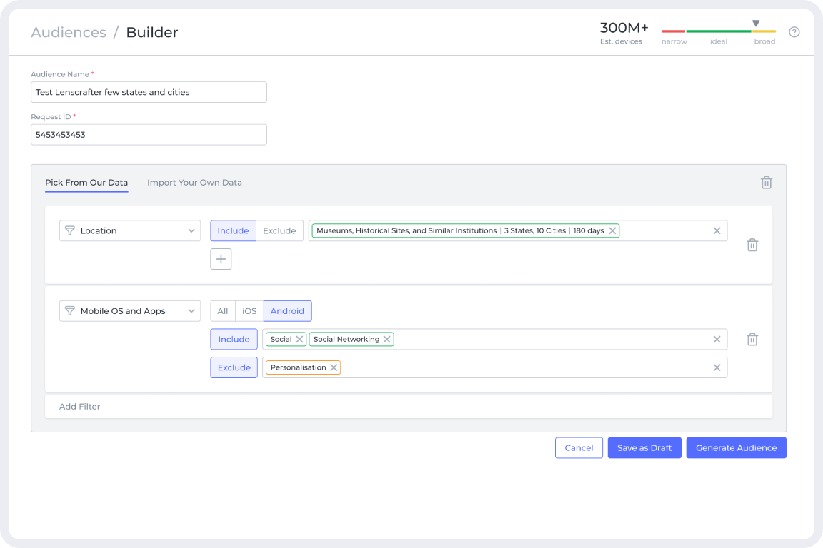 Design and launch a user-friendly interface for creation and configuration of audience segments inside the platform using complex boolean algebra.