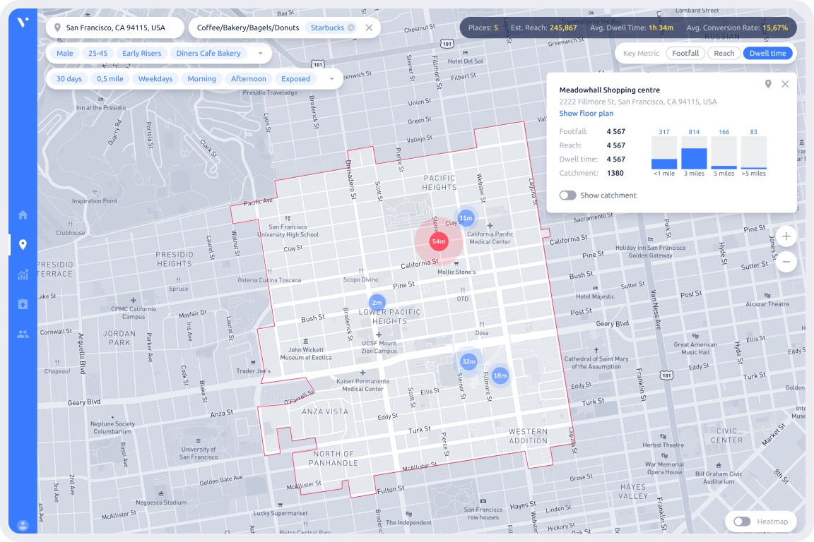 Build a powerful analytical tool for geo media-planning that visualises target groups dwell time, reach, cost and other metrics applying mathematical statistics to the gigantic history of mobile users' interactions behaviour in real-time.